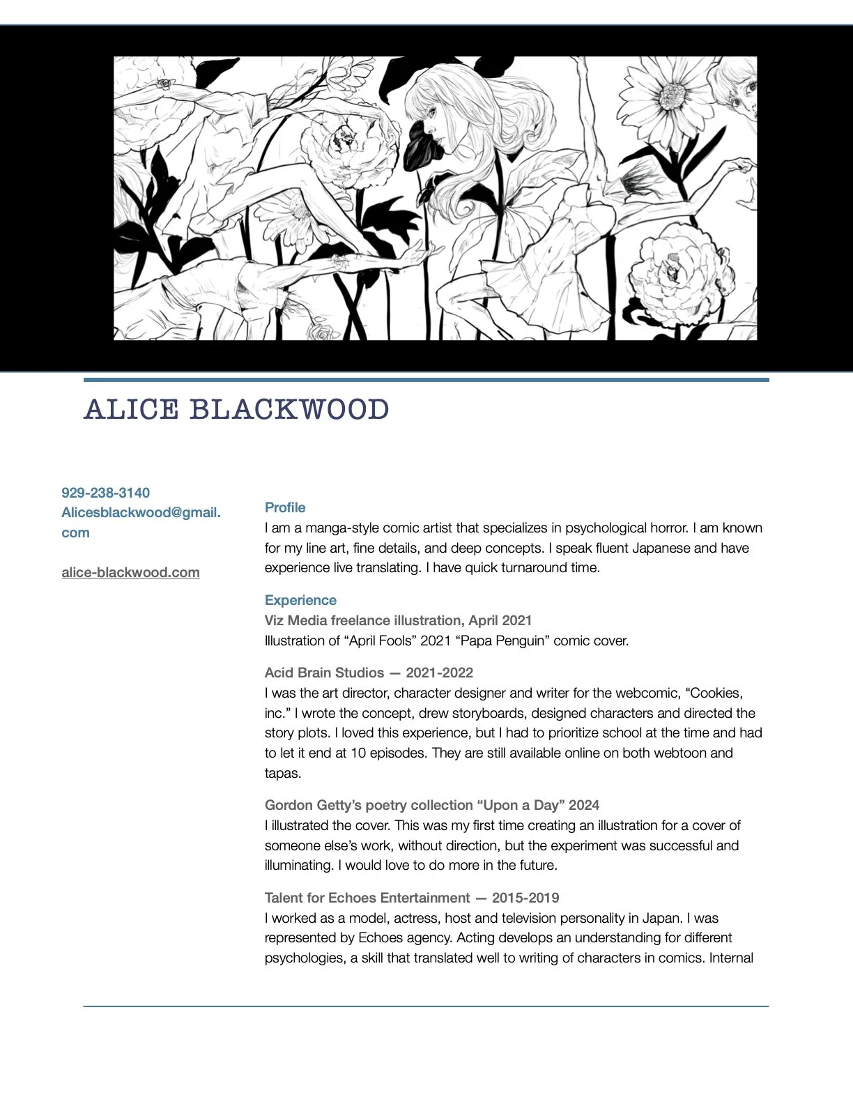 resume Born in CA, shaped by Tokyo, based in NY. I love horror, animals, Japan, travel, running, boxing, and figure drawing.